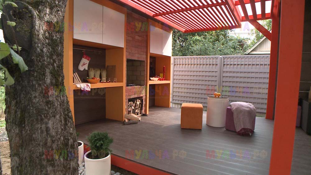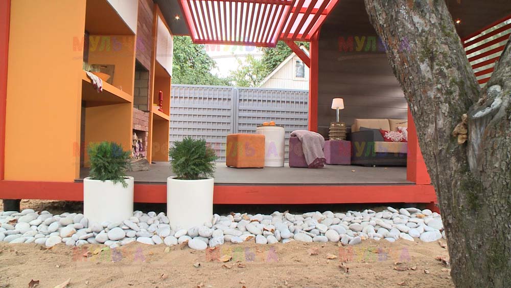 Это не удивительно, ведь при любых работах на приусадебном участке, будь то строительство беседки или веранды, переделка старого дома или украшение сада, невозможно обойтись без качественных натуральных материалов, таких как кора лиственницы, кедровая скорлупа, декоративная окрашенная щепа. Или морская галька, которая была использована в этом проекте.