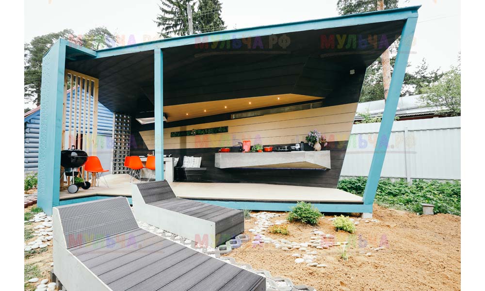 Крупная галька украсила ландшафт вокруг беседки, гладкие, отшлифованные водой камни отлично смотрятся вокруг лежаков. И, наверняка, у многих вызывают приятные воспоминания, связанные с отдыхом и теплым морем.