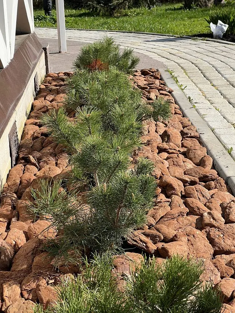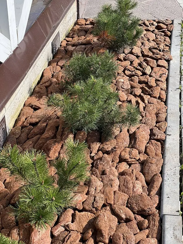 Галтованная кора сосны — это гораздо больше, чем просто натуральный материал для мульчирования. Она сохраняет все преимущества обычной сосновой коры: экологичность, удобство использования, достаточно долгий для органического материала срок службы, хорошие мульчирующие свойства.