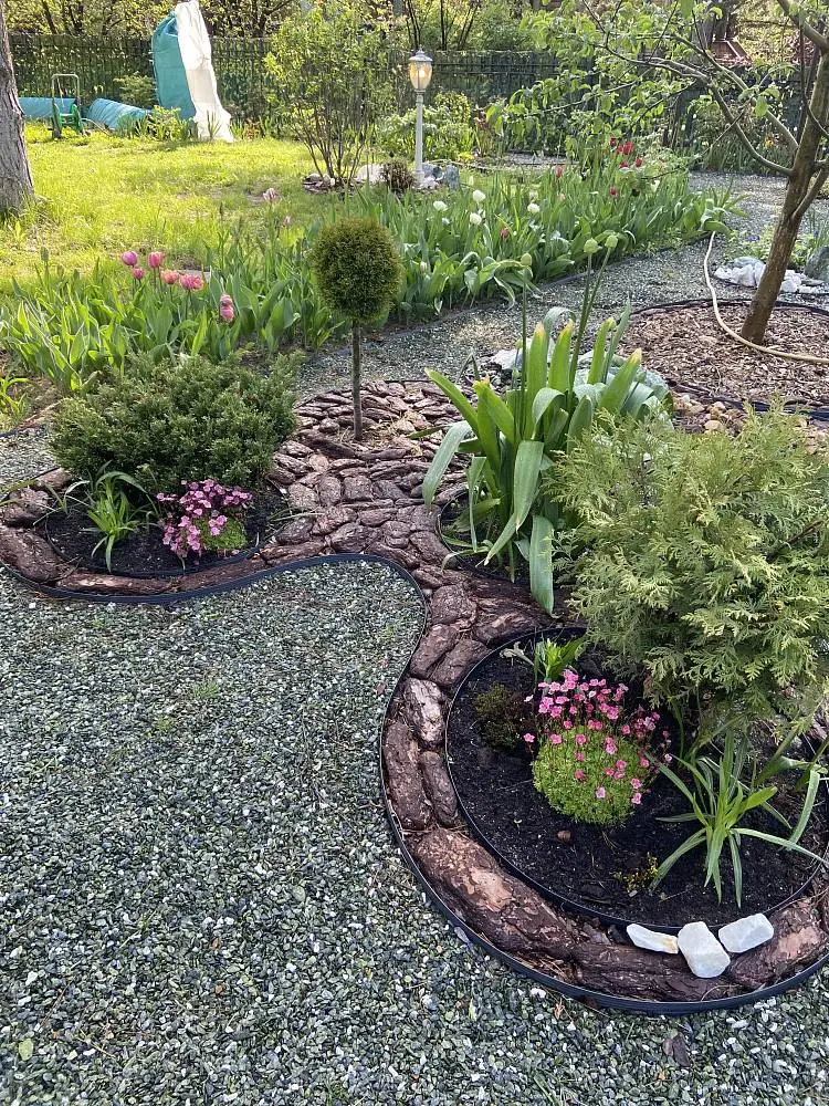 Конечно, отсыпка площадок — не единственная сфера применения галтованной сосновой коры. Она может стать настоящим украшением цветника или клумбы, будет великолепно смотреться в любых декоративных композициях.