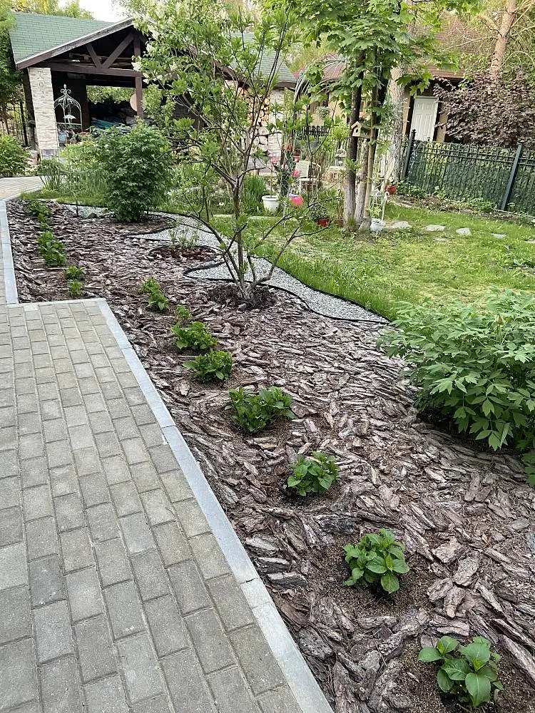 Такая кора просто идеальна для отсыпки дорожек и детских площадок: по ней приятно ходить и бегать. Кора не царапает и не оставляет заноз, что тоже очень важно.